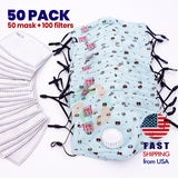 • [50 BAG] Blue Bears Kids Cotton Valve Mask