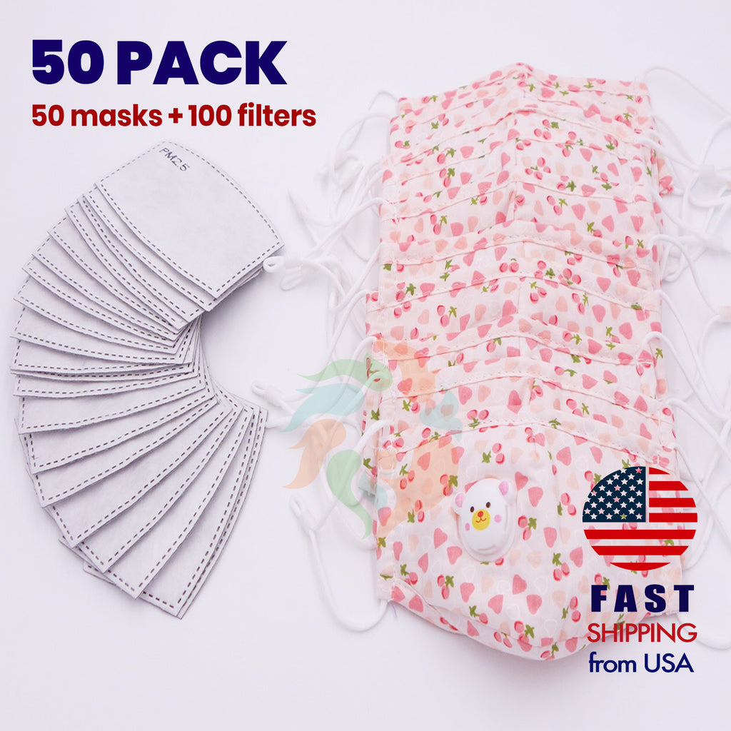 [50 BAG] Hearts Kids Cotton Valve Mask