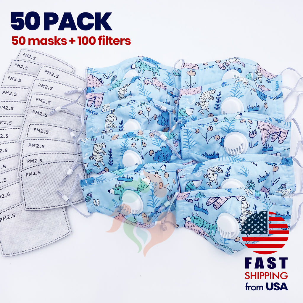 [50 PACK] Animal Kids Cotton Mask