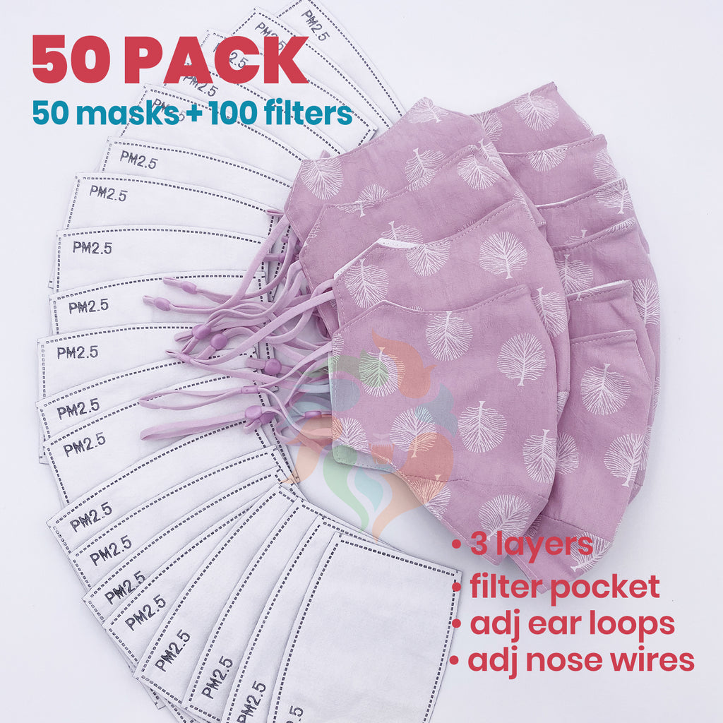 [50 PACK] Purple Tree Printed Linen Cotton 3 Layer Mask + Filters