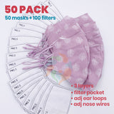 • Included:50 PACK ( each pack comes with 1 mask + 2 filters)