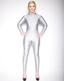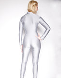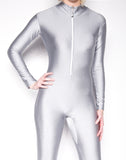 gray mock neck unitard, long sleeve mock neck unitard, shiny spandex unitard, spandex dancewear, gray mock neck dancwear, super hero bodysuit, super hero costume+