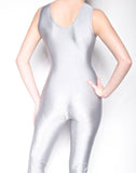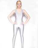 gray unitard, sleeveless unitard, shiny spandex unitard, spandex dancewear, gray dancwear, super hero bodysuit, super hero costume+