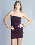 Dark Purple Pin-Tucked Tube Strapless Dress