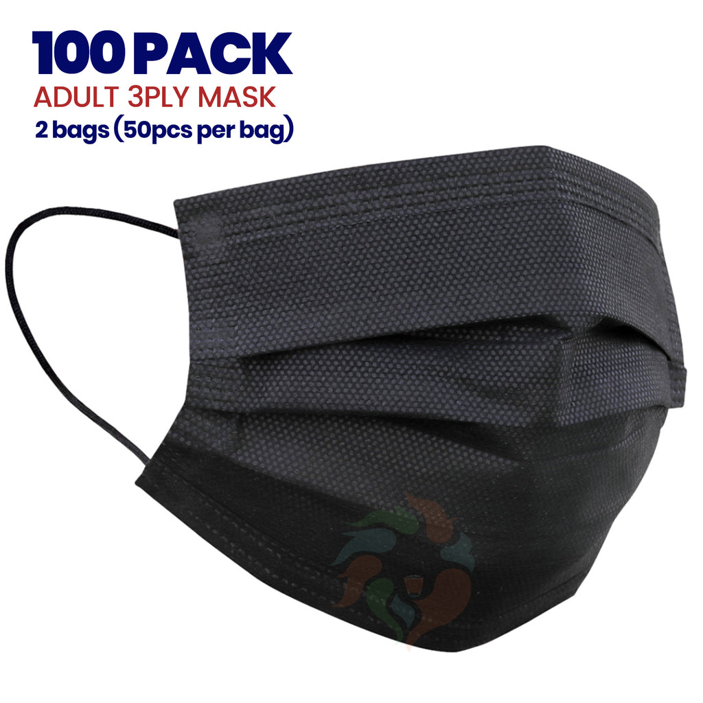 [100 PACK] BLACK 3ply Disposable Adult Mask