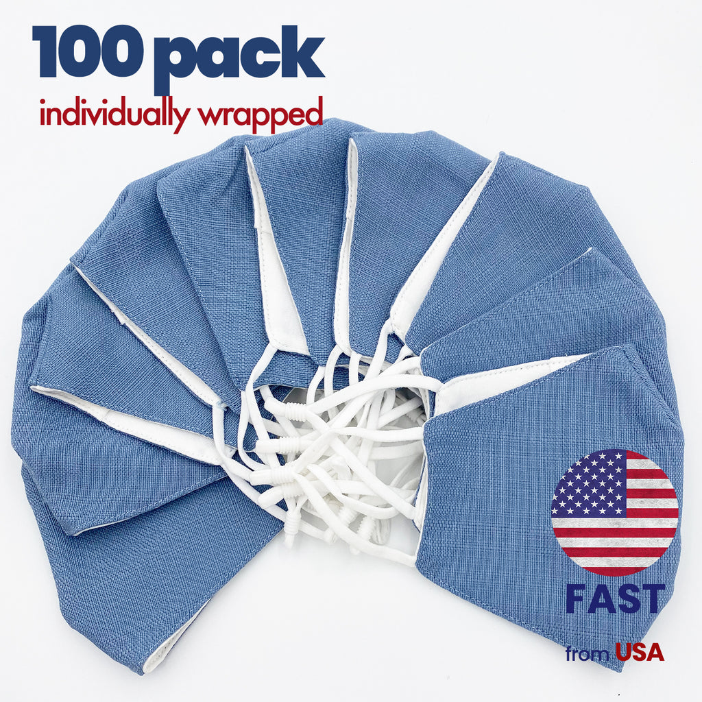 [100 PACK] Light Blue Cotton Double Layer Mask