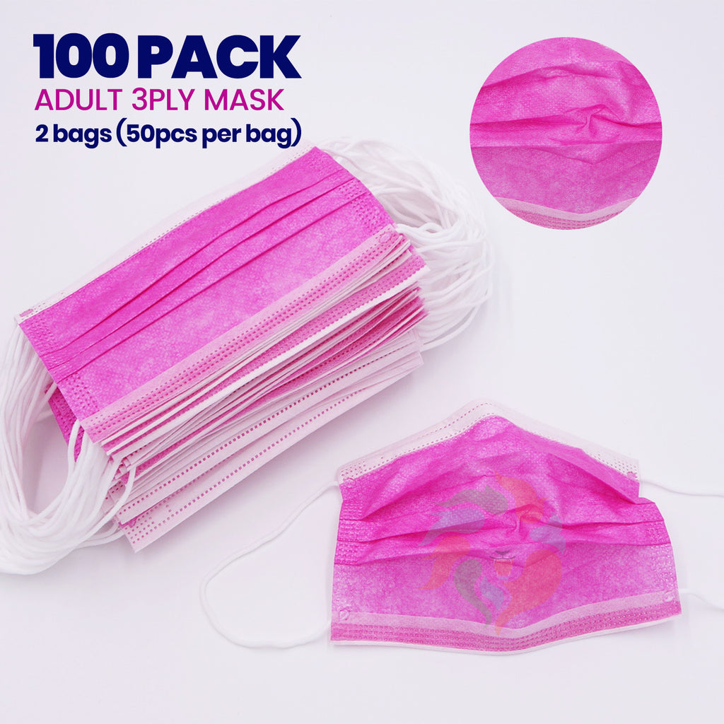 [100 PACK] PINK 3ply Disposable Adult Mask