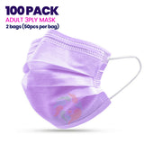 [100 PACK] PURPLE 3ply Disposable AdultMask