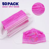 [50 PACK] 3ply Color Disposable Mask-Pink Purple Black White