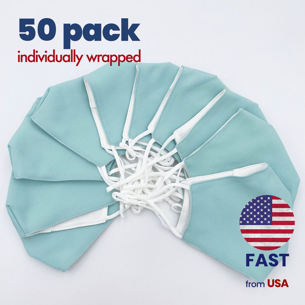 [50 PACK] Robins Egg Blue Cotton Double Layer Mask