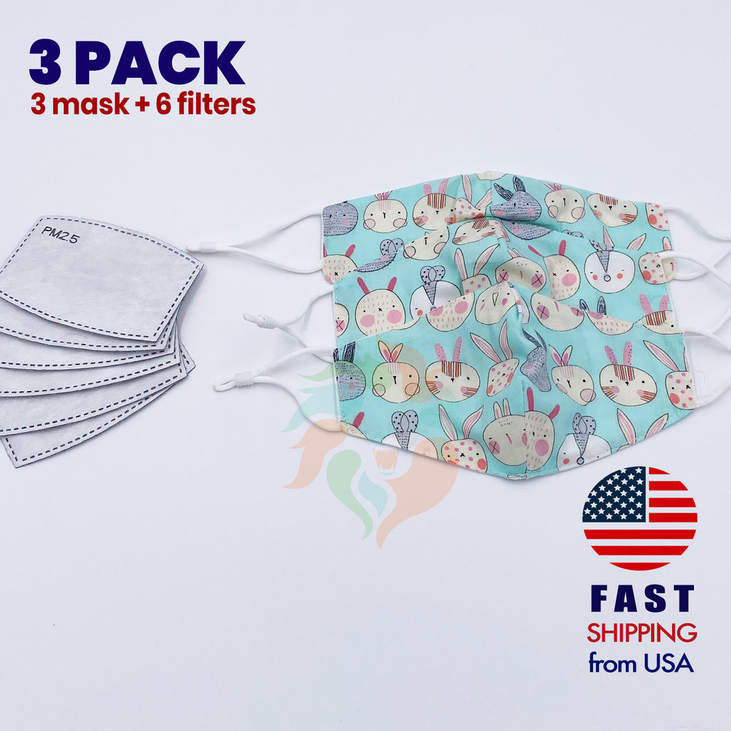[3 BAG] Bunny Friends Kids Cotton 2 Layer Mask