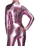 Pink Metallic Wet Look Fetish Super Hero Bodysuit Catsuit Costume