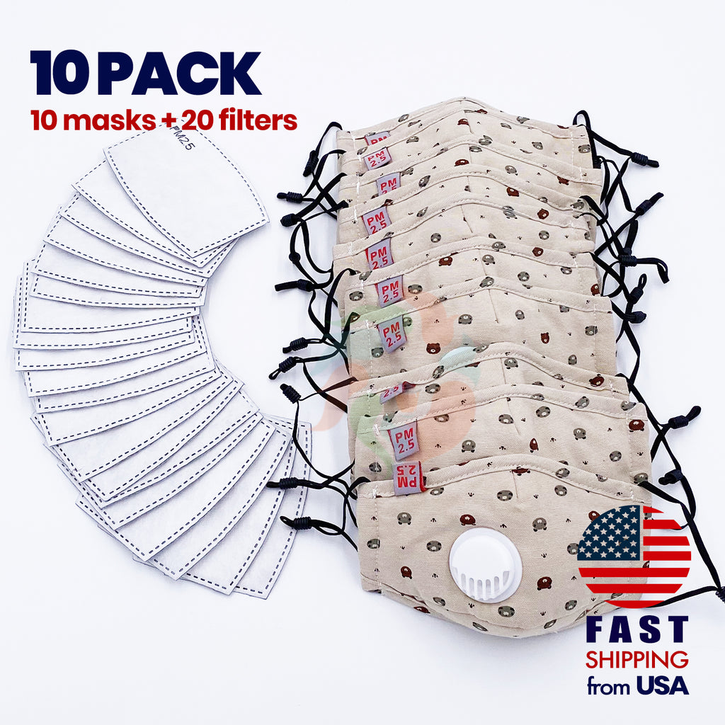 [10 BAG] Beige Bears Kids Cotton Valve Mask