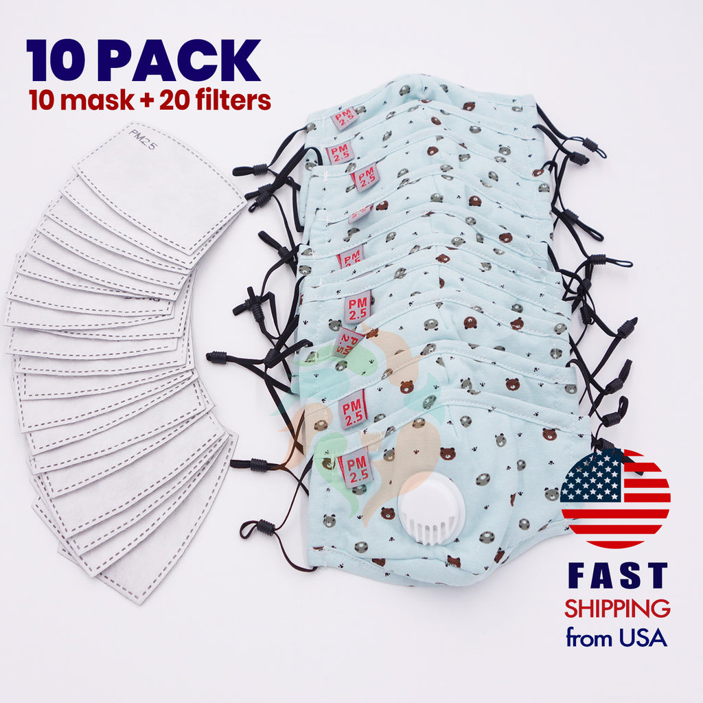 [10 BAG] Blue Bears Kids Cotton Valve Mask