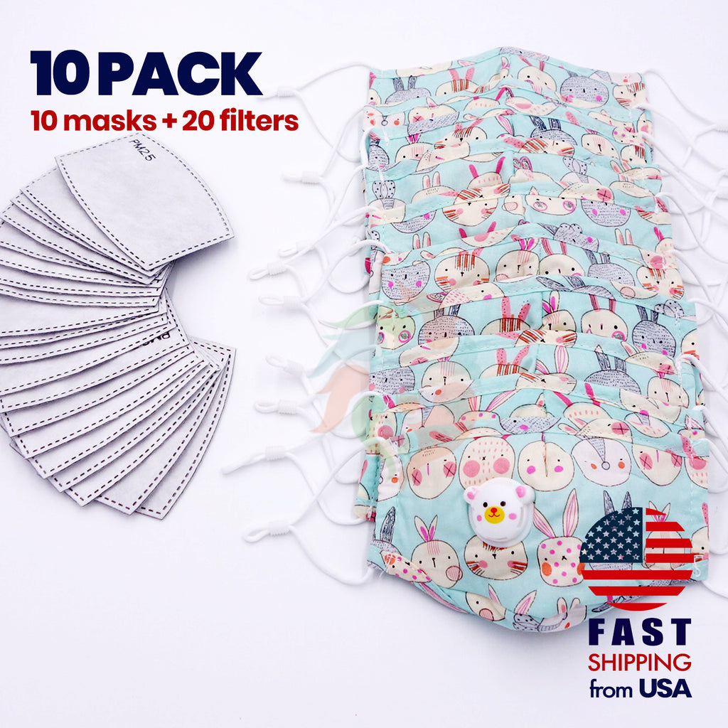 [10 BAG] Bunnies Kids Cotton Valve Mask