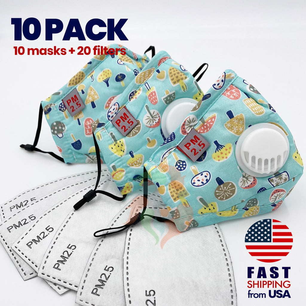 [10 PACK] Blue Mushroom Kids Cotton Mask