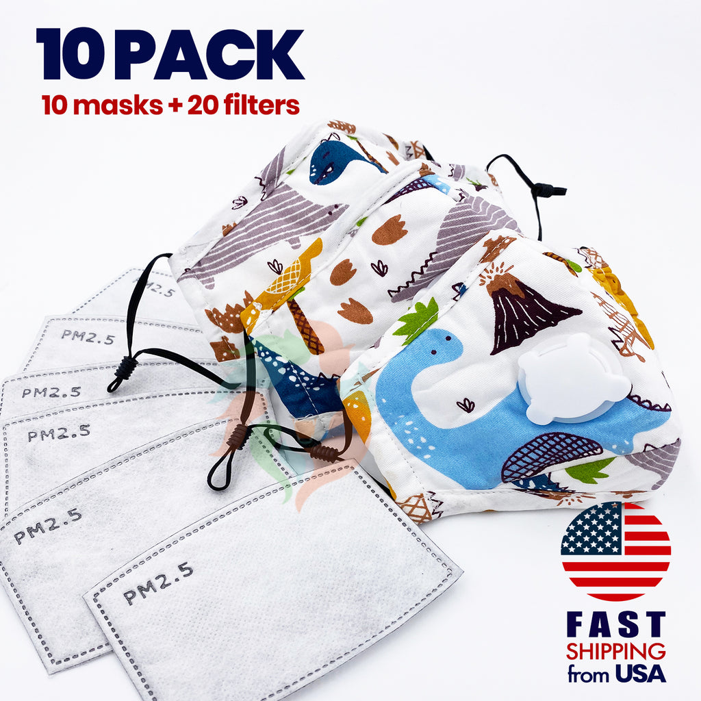[10 PACK] Dinosaur Kids Cotton Mask