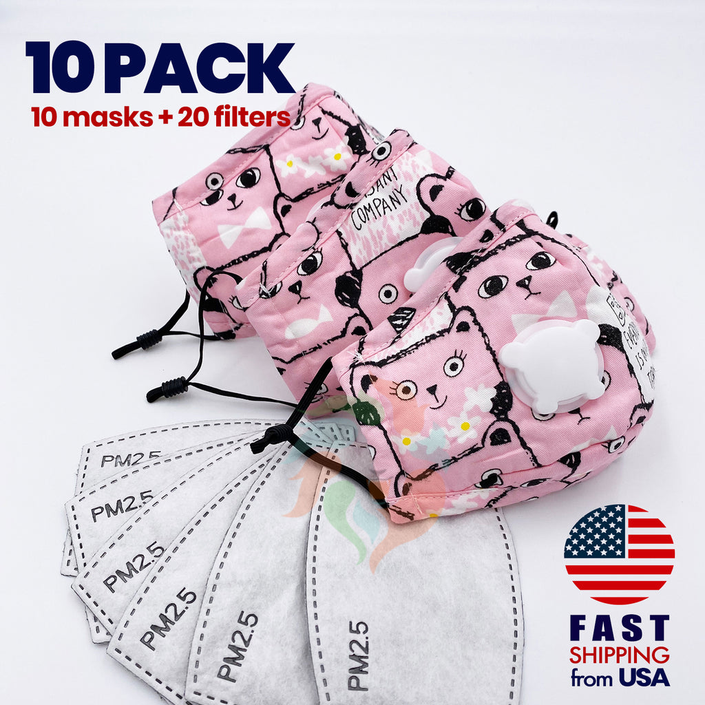 [10 PACK] Kitty Bear Kids Cotton Mask