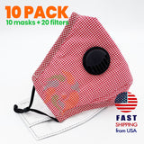 [10 PACK] Red Plaid Cotton 3 Layer Mask with Valve + 2 Filters