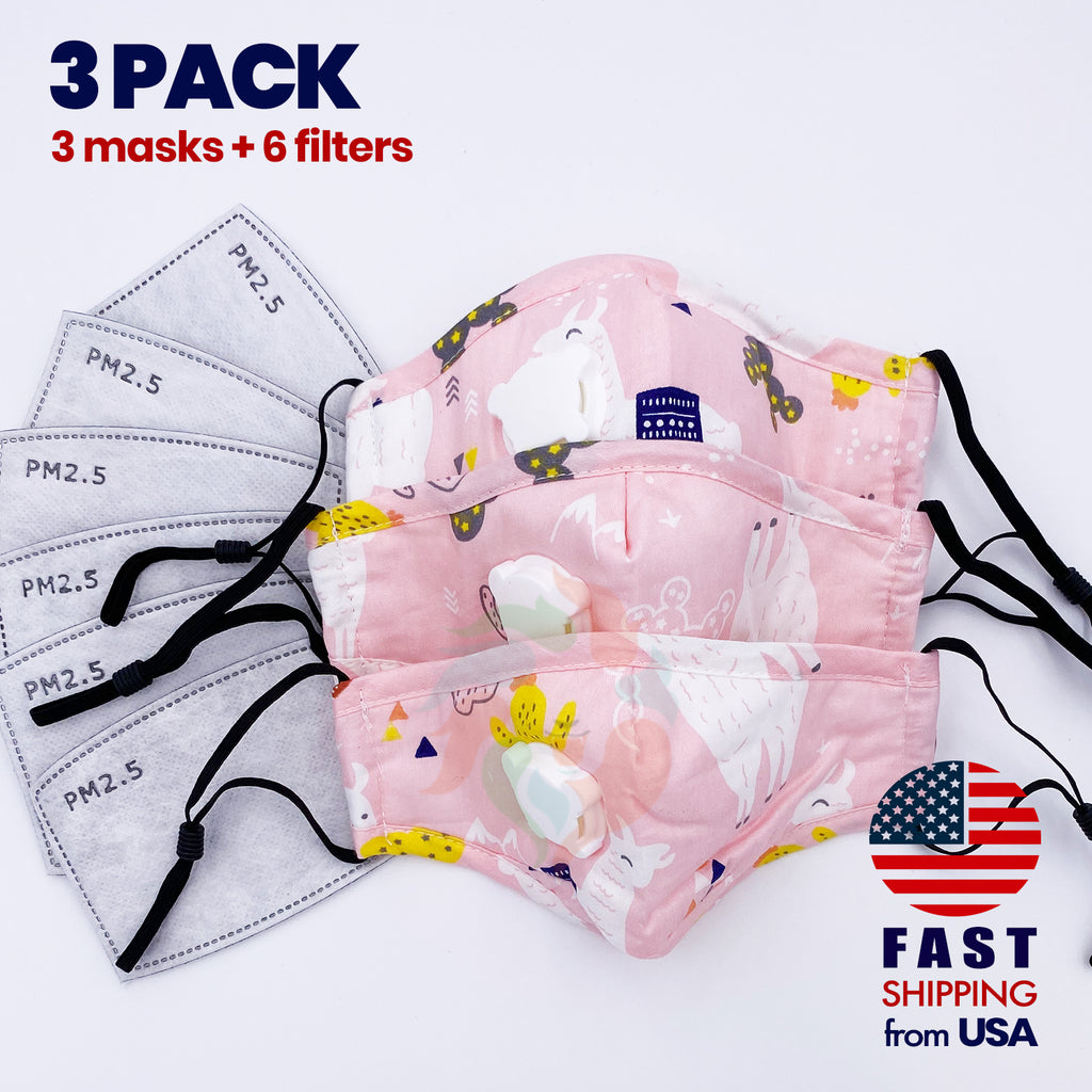 [3 PACK] LLAMA Kids Cotton Valve Filter Mask