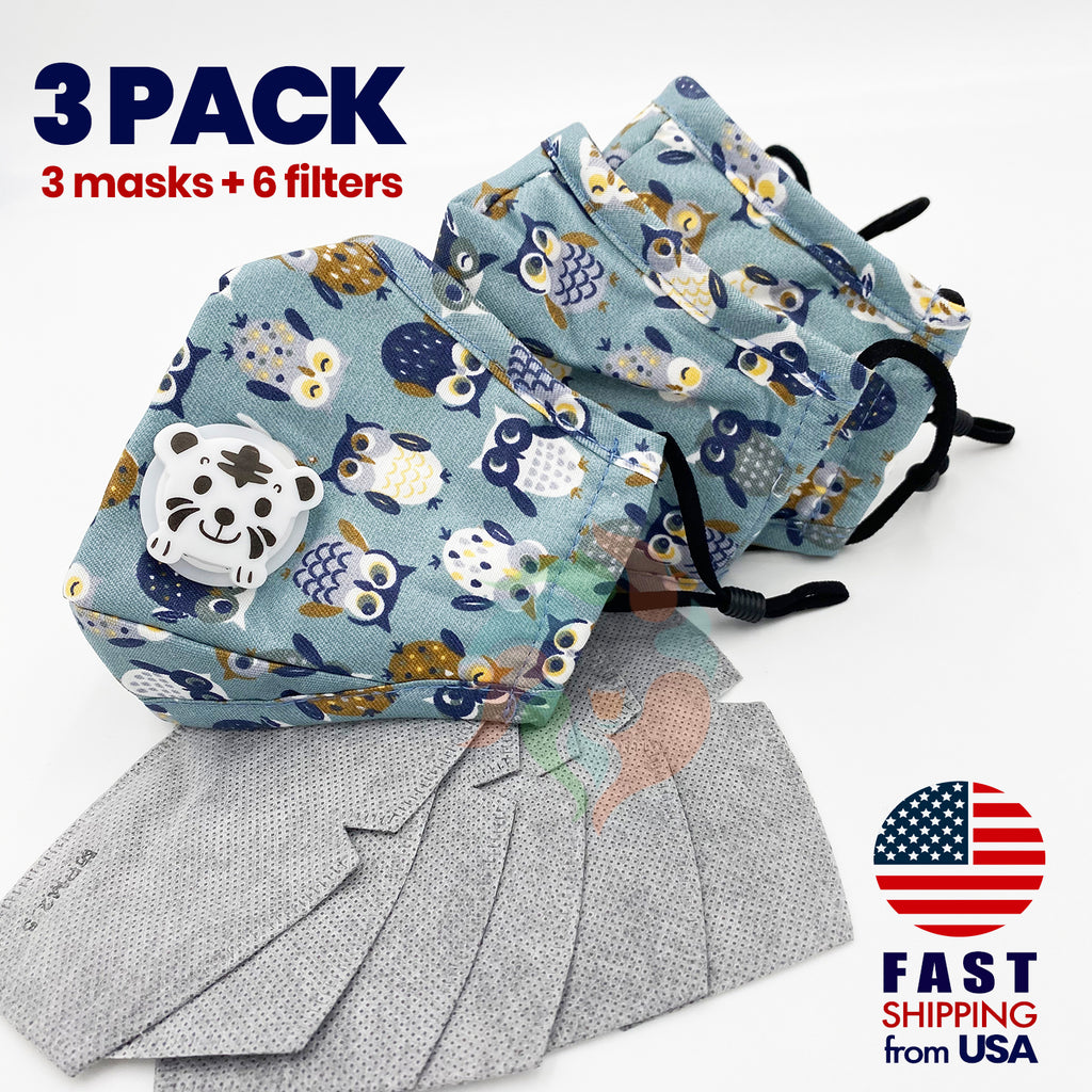 [3 PACK] Owls Cotton Mask with Tiger Valve-Kids