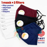 Cotton Face Mask with Valve BLACK|NAVY BLUE|BURGUNDY