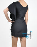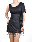 black one shoulder mini dresses, black ruffled one shoulder, black one shoulder top+