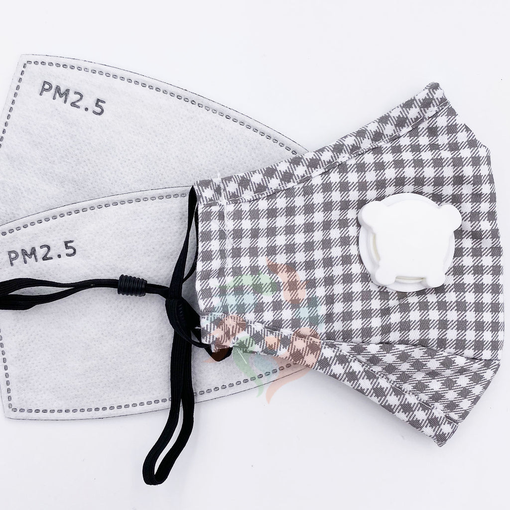 Plaid Kids Cotton Breathing Valve Mask with Filters