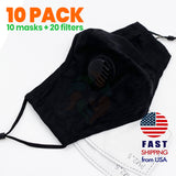 [10 PACK] Black Cotton 3 Layer Mask with Valve + 2 Filters