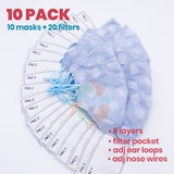 [10 PACK] Blue Tree Printed Linen Cotton 3 Layer Mask + Filters