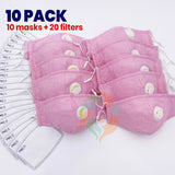 [10 PACK] Pink Plaid Cotton Face Mask with Valve + Filters