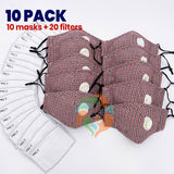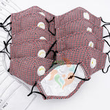 [10 PACK] Red Plaid Cotton Face Mask with Valve + Filters