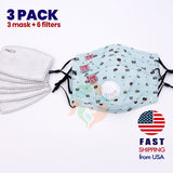 [3 BAG] Blue Bears Kids Cotton Valve Mask