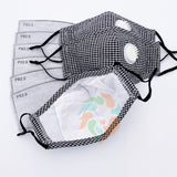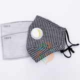 [3 PACK] Black Plaid Cotton Face Mask with Valve + Filters