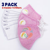 [3 PACK] Pink Plaid Cotton Face Mask with Valve + Filters