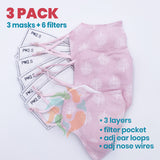 [3 PACK] Pink Tree Printed Linen Cotton 3 Layer Mask + Filters