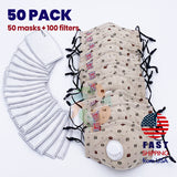 [50 BAG] Beige Bears Kids Cotton Valve Mask